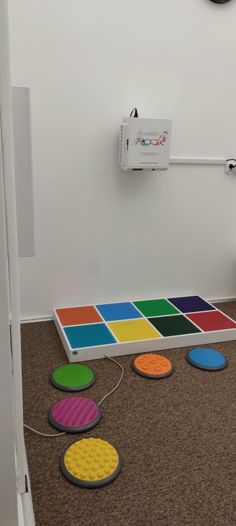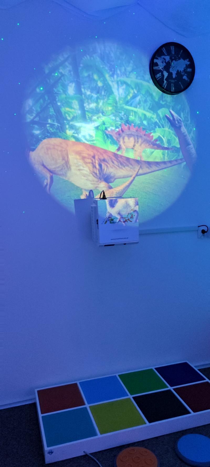 ważnym elementem wyposażenia naszego przedszkola jest "sala doświadczania świata", która pomaga nam w prowadzeniu zajęć specjalistycznych. Sala została wyposażona w narzędzia terapeutyczne oraz cieszący się wielką popularnością wśród dzieci "magiczny dywan-podłoga interaktywna". Z sali w szczególności korzystają dzieci posiadające trudności w integracji sensorycznej. Sala wykorzystywana jest również do codziennej pracy z wychowankami, gdzie dziecko ma kontakt z różnymi zjawiskami i doznaniami, dzięki temu uruchamiają się jego zmysły oraz zainteresowania. Sala ta pozwala lepiej poznać otaczającą rzeczywistość, składającą się z dźwięków, zapachów, faktur i kolorów. Przebywanie w takim miejscu stymuluje układ nerwowy i dostarcza bodźców, które mogą pozytywnie wpłynąć na koncentracje, pamięć oraz aktywność fizyczną dziecka. Dzieci przebywające tam wspólnie z nauczycielem mają również możliwość relaksacji.