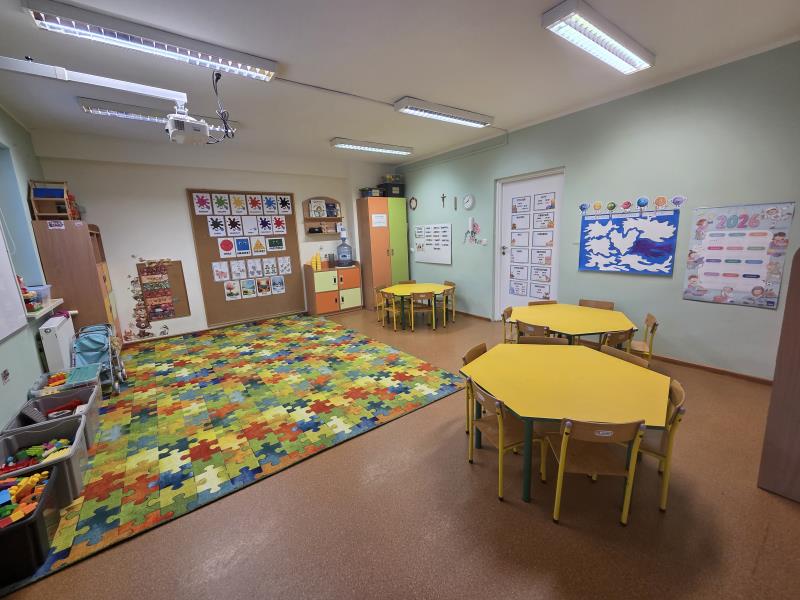 Przedszkole nie jest duże, ale funkcjonuje w nim 5 oddziałów zlokalizowanych w niewielkich, kameralnych salach.