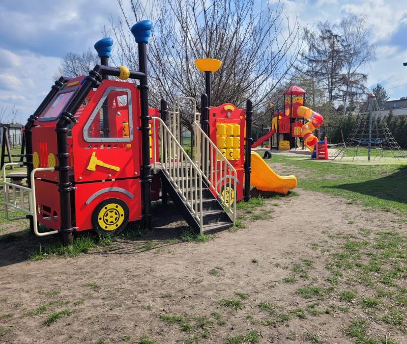 Niewielkie sale rekompensuje ogromny ogród z placem zabaw oraz przylegającym parkiem linowym.